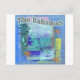 Conçu sur mesure, multicolore dans les tons tropicaux bleu, collage artistique avec eau, palmiers et une carte des îles des Bahamas.