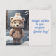 Bailey Bear vous souhaite des voeux chaleureux. Tout habillé pour l'hiver, ce mignon ours est au-delà de l'adorable. Les tons bronzés contre blues et blancs sont un régal hivernal. Approprié pour tous les âges et les sexes.