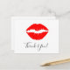 Baiser rouge à lèvres brillant imprimé avec un texte de calligraphie personnalisable message "Merci !". L'image des lèvres rouges est indépendante du message texte, vous pouvez donc customiser la taille et le placement. Carte postale rouge, noir et blanc. Créez vos propres cartes postales de douche nuptiale. Concevez votre propre bachelorette party merci cartes postales. Si vous transférez votre design personnalisé vers un autre produit, vous pouvez choisir votre couleur arrière - plan préférée pour créer un cadeau de remerciement qui correspond à votre palette de mariages choisie.