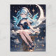A dreamy anime-style fairy sits gracefully beneath a glowing crescent moon, surrounded by twinkling stars and soft night clouds. With shimmering blue hair, delicate wings, and an elegant celestial outfit, this enchanting design is perfect for fans of magical girls, fantasy art, and serene night time aesthetics.