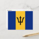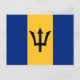 Drapeau de la Barbade. Le drapeau national de la Barbade a été officiellement adopté le 30 novembre 1966, premier jour de l'indépendance de l'île. Il se compose d'un tribande de deux bandes d'ultramarines, qui sont supposées représenter l'océan ; séparées par une bande médiane dorée, représentant le sable de l'île. Une tête de trident noire (communément appelée "trident cassé"), est centrée au sein de la bande d'or. Le symbole trident a été pris de l'insigne colonial de la Barbade, où le trident est montré avec Britannia en sa possession. La partie inférieure brisée symbolise une rupture symbolique de son statut de colonie. Les trois points du trident représentent les trois principes de la démocratie - 1) le gouvernement de, 2) pour, et 3) par le peuple.