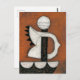 Un tableau abstrait suggérant un voilier. Composé de grandes formes de noir et blanc sur un arrière - plan orange brûlé rouillé, il y a des coquilles Saint-Jacques, de fines dalles, des triangles, un grand cercle et des éclaboussures.