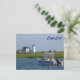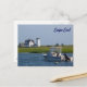 Image pittoresque de Cape Cod, cette photo présente un bateau à moteur amarré et un phare au soleil du soir à Stage Harbour, Chatham, Massachusetts