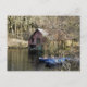 Un design photographique de bateaux bleus et une ancienne boathouse au bord du lac. Pays de Galles Royaume-Uni.