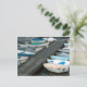 Customisez la carte postale Row Boat at Dock avec votre propre message ou texte personnel. Cette carte postale personnalisée à thème de navigation de plaisance présente une photo de petits bateaux de pêche attachés à un quai en bois patiné dans une marina d'Ogunquit dans le Maine.