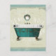 © Sue Schlabach/Apple sauvage. L'image montre un bain parisien vintage dans les tonalités blanches et bleues. Une baignoire bleue et blanche, un miroir démodé, et une frontière bleu-clair peuvent être vus sur l'image.