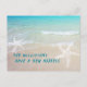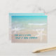 Nouvelle adresse carte postale faire-part avec thème plage. Design mer et sable et étoiles de mer avec deux modèles texte. L'eau tropicale bleue océanique est l'arrière - plan de votre texte. Sur le devant, "Nous / J'ai une nouvelle adresse" ou "Nous / J'ai déménagé". Inclure les noms et l'adresse de la nouvelle résidence sur le dos. Des étoiles de mer blanches transparentes ornent les deux côtés.