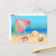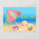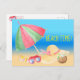 Plage Time is Fun Time ! Cette carte postale amusante est décorée sur le thème de la plage. Il dispose de tous les équipements nécessaires pour passer une journée à la plage en commençant par un parapluie rouge et vert. On y trouve également un casquette paillote, des lunettes de soleil rouges, un écran solaire et une boisson tropicale. Le texte sur le devant peut être personnalisé avec un nom, une date ou une occasion spéciale. Sur le dos de la carte postale, il y a une version plus petite des lunettes de soleil à côté de l'adresse de retour. Il y a aussi des lignes de règle à l'arrière pour une adresse.