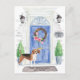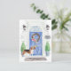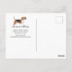 Annoncez votre nouvelle adresse avec notre faire-part élégante comprenant un Beagle, une porte d'entrée bleue, un tapis de bienvenue, une ardoise, des topiaires et une couronne fleurie posée sur un arrière - plan en brique grise.