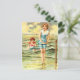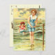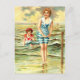 Illustration de style pin up vintage de deux femmes à la plage dans leur dernière mode en maillot de bain.