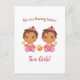 Jolie bande dessinée filles en rose et des bibs jaunes assortis tenant des petits hochets.