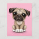 Carte Postale Bébé mignon Carlin Chien chiot sur rose