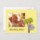 Annoncez l'arrivée de votre nouveau-né avec ce design mignon avec personnalisation photo! Design est livré avec un koala bébé qui s'accroche à l'arrière de mommy koala pendant qu'elle est au sommet d'un arbre. Les ours de Koala sont connus pour leur rôle parental qui express la maman d'amour pour l'enfant. Koala est aussi un animal originaire d'Australie et sera donc idéal pour les enfants en Australie. Personnalisez facilement avec le nom et la photo de l'enfant.