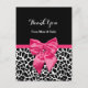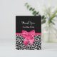 Un cadeau de baby shower rose et noir mignon merci carte postale avec imprimé girafe blanc et noir ceint et ruban rose vif attaché dans un joli arc. Personnalisez ce cadeau bébé poster de animal élégant merci en ajoutant un message spécial de remerciement de maman et bébé. Image imprimée plate, pas le ruban réel.