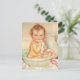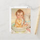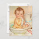 Une charmante carte postale vintage représentant un bébé mignon prenant un bain dans un bol. N'hésitez pas à ajouter un nom, une date ou tout texte que vous souhaitez.