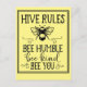 Art moderne et ludique : "Hive Rules - Bee Humble, Bee Kind, Bee You" arrière - plan Jaune.