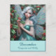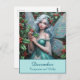 Une belle fée aux cheveux bleus clairs avec ailes perlées portant une jolie robe turquoise et blanche tient une branche de saint tout en étant entourée de feuilles saints et de baies.