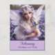 Une belle fée de lavande pâle aux ailes blanches et argentées portant une jolie robe de lavande et un collier améthyste tient un violet unique dans un champ de violettes.