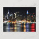 Superbe photo colorée de la ligne d'horizon de New York la nuit, avec ses bâtiments illuminés se reflétant dans la rivière sombre.