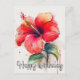 Cette carte postale d'anniversaire pleine de vie présente une belle représentation d'une fleur d'hibiscus tropical rouge. C'est un choix idéal pour les mères, les filles, les grand-mères, les amies, la famille et les collègues. #Coloré #Rétro #Vintage #Petite amie #Femme #Mère #Féminin #Joli
