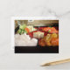 Photo d'un déjeuner japonais -servi dans la boîte spéciale appelée bento.Il contient de la salade de gohan (riz), sashimi(saumon cru), du poulet frit, wasabi (radis de cheval) et une assiette de poisson.acheter cette photo sur un grand poster :