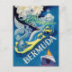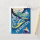 Carte postale des Bermudes. Design floral d'une belle sirène sur l'île, et d'un bateau à venir.