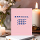 Le design stylisé montre trois vagues d'océan ou d'eau et le mot "Bermudes" ci-dessus dans un texte moderne cool. Le design est bleu. Bermudes couleur arrière - plan rose. Conception nautique minimaliste pour surfeurs, yachts, plaisanciers, marins, nageurs, snorkeling aux Bermudes. Pour les Bermudiens, les visiteurs, les marins et les touristes, à la recherche d'un souvenir cool.