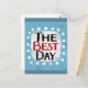 "The Best Day" est un design de texte mignon en bleu clair avec du texte en noir et rouge, avec une forme d'accent blanc et des points blancs à texture blanche.