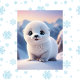 Animaux mignons, hiver, Phoque, Carte postale, Carte postale, Carrefour postal, Croisement postal, mignonette, moderne, magique, girly, tendance, esthétique, étonnant, tonifiant de couleur tendance, génétivecontent, Génération IA, stationnaire
