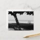 Carte postale avec photo en noir et blanc montrant un vélo sur une plage. Prise à Sanur Beach sur Bali Island.