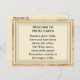 Welcome To Hotel Earth Postcard est un design sur un arrière - plan en or avec texte. Ce dicton de motivation a été reçu dans la méditation. Le texte est ©2019 Patricia Fogelsonger. Ce design fait partie de la série "Sayings By Patricia Series".