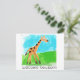 Le nouveau monde autour de moi ! La girafe de bébé court autour de la carte postale pour accueillir un nouveau-né.