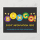 Carte postale de l'événement de Bingo vous pouvez customiser pour la soirée de Bingo, la journée de jeu de bingo régulière ou la collecte de fonds d'événement spécial. Les lettres pour BINGO sont en or métallique sur des cercles colorés avec des étoiles sur un arrière - plan noir. Modifiez les lignes de texte avec des informations sur votre événement, et ajoutez du texte au verso ou utilisez-vous pour écrire une note personnelle.