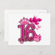 Création de carte postale blanche pour un anniversaire Sweet Sixteen amusant avec couronne, ballons, cadeau et chiffres/texte Sweet Sixteen. Carte postale pour quiconque célèbre son seizième anniversaire !