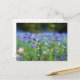Un champ de fleurs de maïs dans les tons bleu profond et pâle, violet, lavande et rose, avec des feuilles vert pâle.