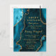 Cette invitation d'anniversaire élégante et glamour pour sweet sixteen présente un fond de marbre d'agate bleu sarcelle avec des accents de paillettes dorées fausses. Le texte combine une écriture manuscrite et des polices sans serif modernes pour un look classe et sophistiqué. Cela sera parfait pour les anniversaires d'automne et d'hiver.