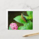 Photo d'un papillon Morpho Bleu sur une feuille d'un plante Penta.