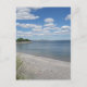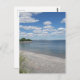 Carte postale vierge avec vue sur le lac et ciel bleu nuageux.