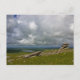 Des nuages bas dominent le ciel dans cette vue depuis le sommet de Rough Tor sur Bodmin Moor, Cornouailles, qui est marqué par un cairn. Photographie de Sabine Steinmüller.