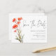 Boho Red Fleurs sauvages QR Code Script Enregistrer La Date. Une carte postale pratique pour demander à vos invités d'enregistrer votre date. Ajoutez votre code QR à votre site Web mariage ou supprimez-le si vous n'en avez pas besoin. Un design floral minimaliste avec Save The Date dans un script moderne.Le reste du texte que vous pouvez facilement personnaliser. Les couleurs du texte et de l'arrière - plan peuvent être modifiées si vous le souhaitez via l'option personnaliser.