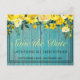 Cette jolie carte postale rustique Save the Date présente un arrière - plan en bois bleu avec une typographie branchée décorée d'un joyeux bouquet floral couleur rose jaune avec des feuilles vertes. Customisez la police et la couleur du texte à votre goût.