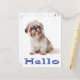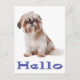 Aww...Qui pouvez-vous résister au visage doux d'un chiot chih Tzu chien ? Cette mignonne carte postale Hello canine présente une image d'un poil de rivage tan et chih tzu blanc mis en évidence contre un arrière - plan blanc immaculé. Canine Postcards are great for.... * Notes personnelles * Organismes de secourt et d'adoption de chiens * Salutations - Bonjour, amour, manquez vous, désolé, penser à vous, etc. * Collectes de fonds et organismes de bienfaisance * Entreprises - vétérinaires, toiletteurs, entraîneurs et sélectionneurs S'il vous plaît faire défiler vers le bas pour voir d'autres cartes postales de chiens que vous pouvez aimer. Erreurs d'orthographe - shihtzu, shitzu,