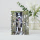 Brighten someone's day with a Border Collie post card. This fun canine postcard fea portrait of a smiling black and white border Collie puppy dog standing on a tree stump in the woods. The back of the postcard is blank for your message. Dog postcards are an economical alternative to greeting cards when you want to send a quick note to family, friends and customers. General greeting postcards are perfect for... * Personnel Notes * Dog Rescue / adoption organizations * Business Vets - Vets, groomers, breeders, etc. * Greetings - hello, miss you, love, love sorry, thinking of you, etc * Attach to ventoxiques et favors * Announligne - ligne - ligne - new addraddraddraddraddry parties, save the dates, please scroll to view other dog products you may enjoy. Jour : miss you, thinking of you, love, hello, thank you, get well soon, birthday, friendship, désolé,