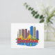 Un portrait artistique et vibrant des gratte-ciel emblématiques du centre-ville et de l'arrière-baie de Boston qui surplombent le pont de Zakim avec des voiliers naviguant dans les eaux bleues de la ville.