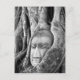 Jolie photo en noir et blanc d'une tête de statue de Bouddha aux racines d'arbre cultivées autour. Photo prise à Ayutthaya, Thaïlande.