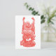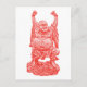 Image riante rouge de style de gravure sur bois de Bouddha avec des mains levées.