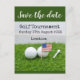 Boule de golf avec drapeau d'Amérique sur herbe verte Carte postale