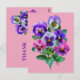 Bouquet aquarelle coloré de fleurs de violettes pensées sur fond rose et inscription MERCI au verso. Vous pouvez modifier le texte, la couleur, le style de police et la couleur de fond en utilisant l'option Personnaliser.