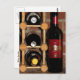 Cette carte postale colorée présente une simple durée de vie d'une bouteille de vin debout à côté de trois bouteilles supplémentaires dans un porte-vin en bois. Un arrière - plan rustique en brique complète la composition.