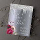 A Save the Date pour une fête de 60e anniversaire. Un arrière - plan métallique en faux argent foncé. Décoré de fleurs rose rose et violet foncé, de parties scintillant faux argentées, d'allure de goutte de peinture. Modèles pour un nom et une date. Le texte : Save the Date est écrit avec un grand script de style à la main moderne. Conseil : Si vous ne voulez pas qu'il ressemble à une carte postale, cliquez sur customiser, allez à l'arrière et retirez le séparateur et le timbre postal.